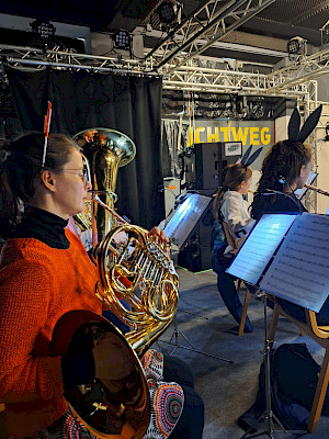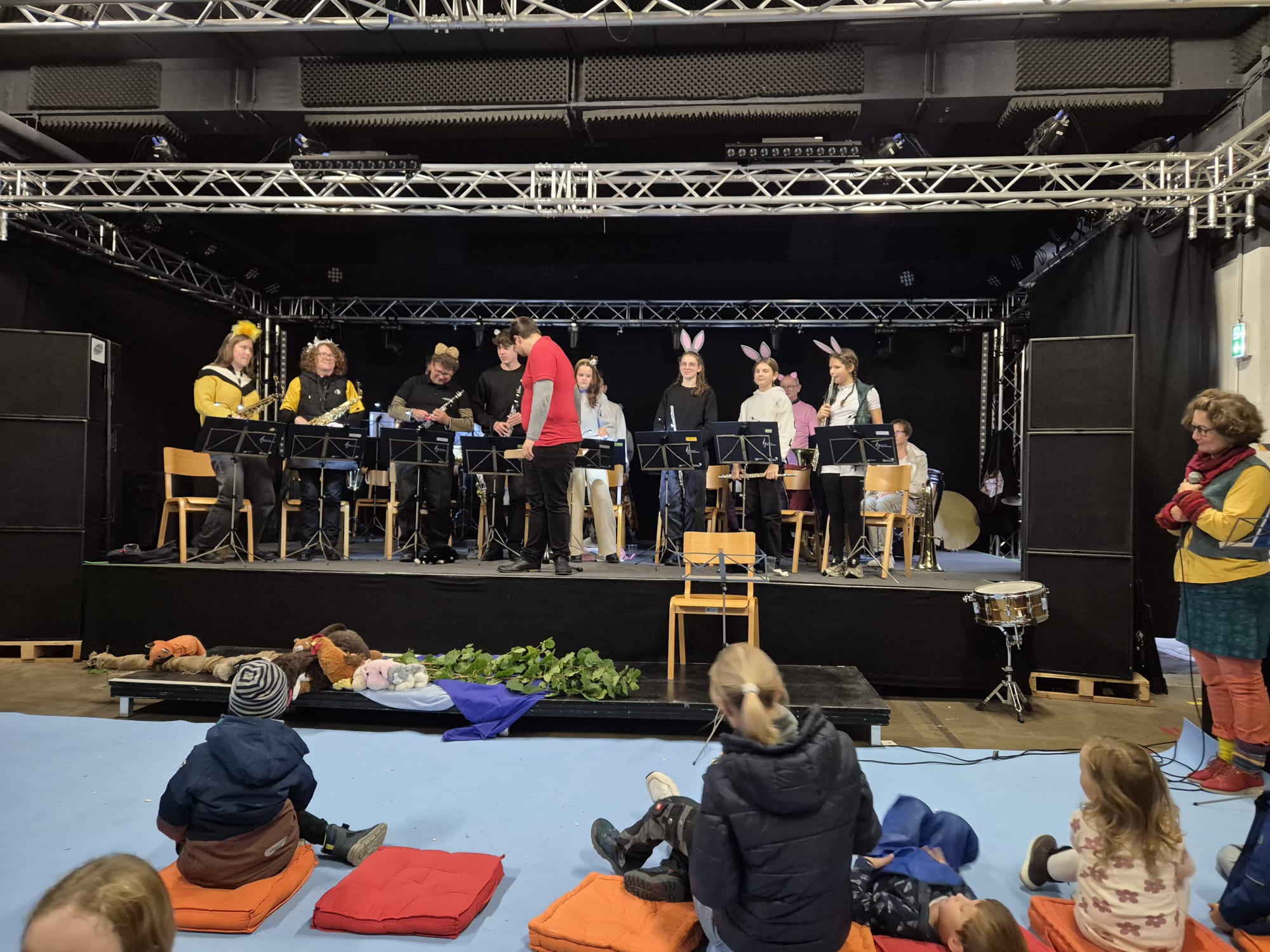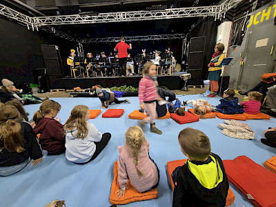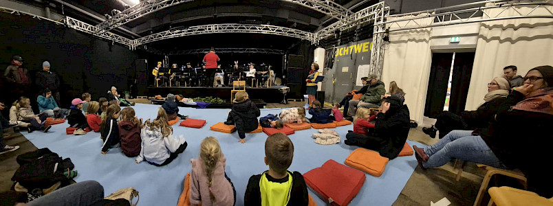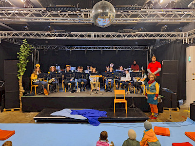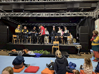 Das Kapellchen begeisterte sein junges Publikum mit einer musikalischen Reise einiger Tiere auf einem Baumstamm. Eine gute Möglichkeit Kinder mit Blasmusik vertraut zu machen.