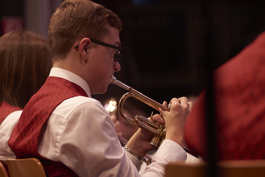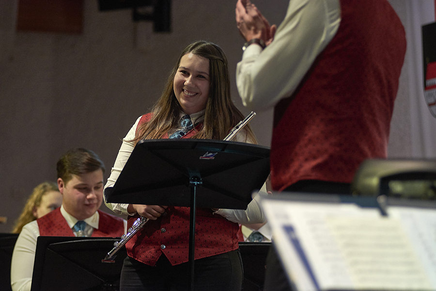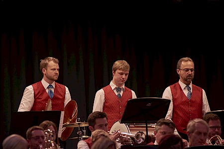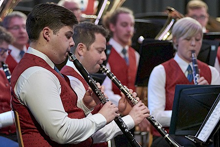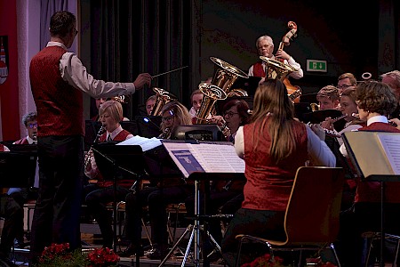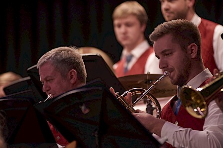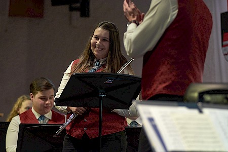 Man hätte am 1.Dezember in der Gusenhalle die berühmte Stecknadel gehört, wenn sie gefallen wäre. So still war es im Saal nach der Darbietung der "Story of Anne Frank", bevor das Publikum die Leistung der Musikerinnen und Musiker mit kräftigen Applaus honorierte. Otto M. Schwarz erzählt mit seiner Komposition die Geschichte der Annes Frank, einem jüdischen Mädchen, das kurz vor Kriegsende 1945 in Ausschwitz zu Tode kam. Die Kapelle schaffte es damit die Anwesenden in den Bann zu ziehen und neben dem musikalischen Genuss zum Nachdenken anzuregen. Das Konzert stand unter dem Motto Gedenkjahr 2018. Einem Jahr in dem vieler Ereignisse gedacht wird, die großen Einfluss auf unser Land hatten - wie die bürgerliche Revolution 1848, die Ausrufung der Republik 1918, der Anschluss an Hitler Deutschland 1938, die Menschenrechte 1948 und die wilden 68ger. Sich erinnern, um Gegenwart und Zukunft zu gestalten – das wollte die Kapelle an diesem Abend vermitteln und natürlich dem Publikum gute Musik präsentieren, was der Stadtkapelle und auch dem Stadtkapellchen hervorragend gelang.