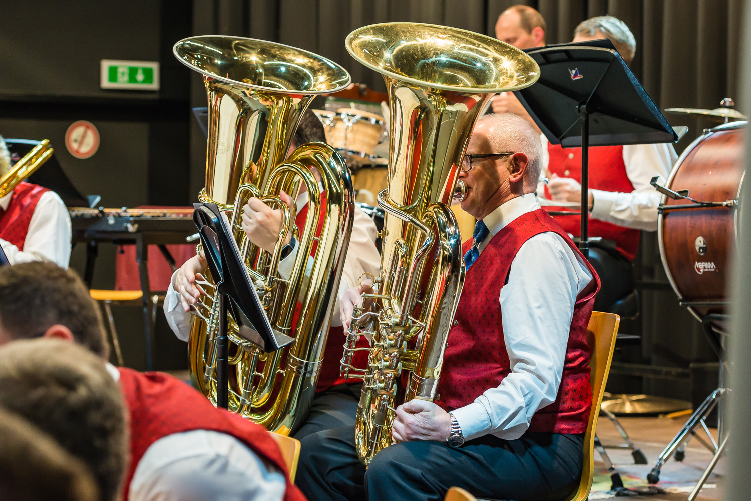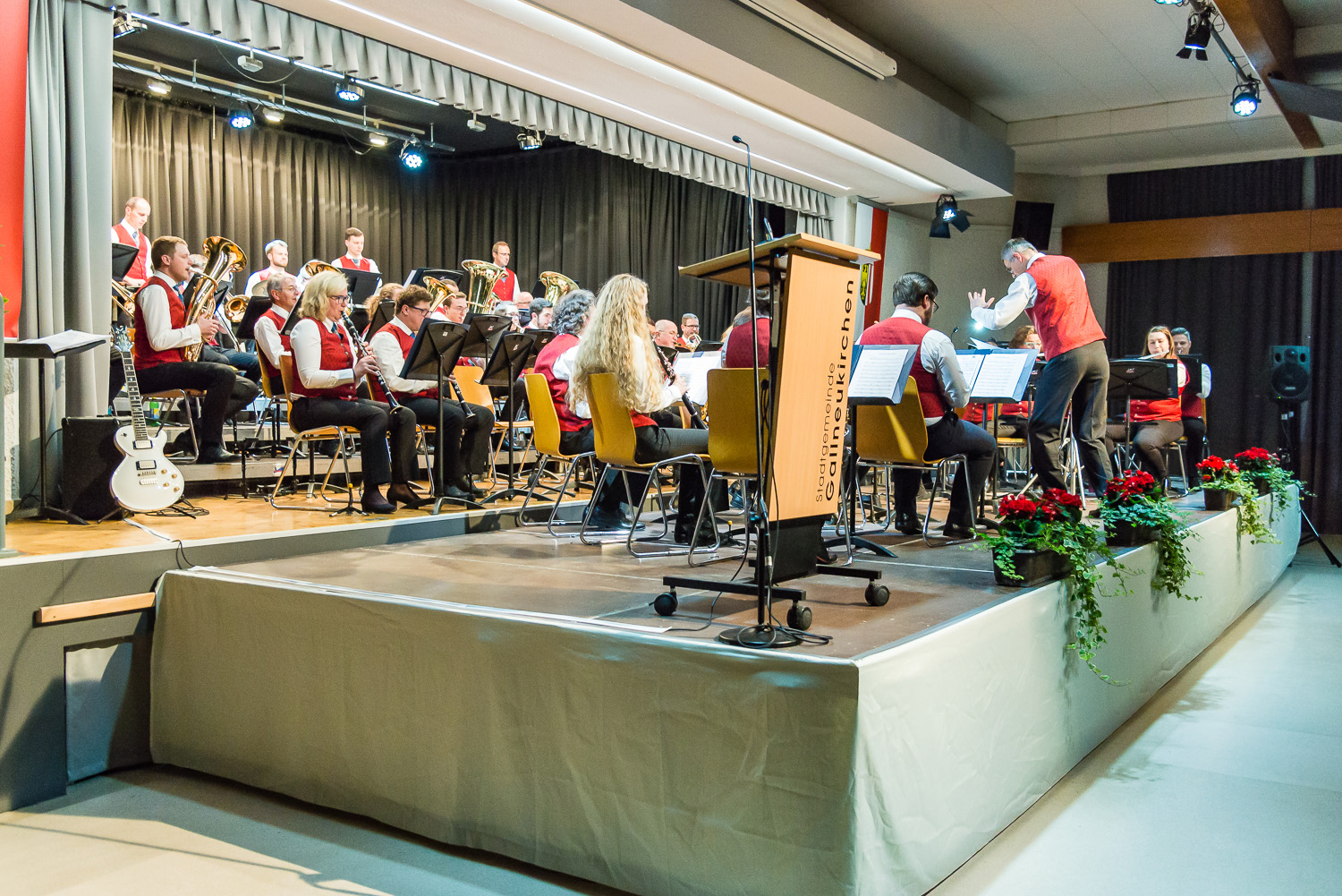 Die Musikerinnen und Musiker belohnten sich mit einem überaus gelungenen Konzert für die harte, aber gute Probenarbeit im vergangenen Herbst. Die vielen Menschen, die sich in der Gusenhalle einfanden, erlebten vor der Pause das Stadtkapellchen unter Michael Schöffl, das das Konzert eröffnete. Mit der Titelmusik der Simpsons, "Hey Jude" von den Beatles, wo sich Xaver Leonfellner mit seiner Posaune als Solist hervortat und amerikanischen Märschen von John Philip Sousa begrüßte der Nachwuchs das Publikum. Wolfgang Seyer übernahm das Dirigat und entführte die Bläserinnen und Bläser in die Welt der sinfonischen Musik. Wiener Blut, der Untergang der Titanic und der Kampf der nordischen Götter forderten die Kapelle bis zur Pause. Das Publikum nahm die vorhandene Spannung auf und belohnten schon jetzt mit tosendem Applaus. Nach der Pause in der die Musibusserl (vielen Dank an das Cafe Capuccino) und die eigens angefertigen Musipralinen "Pralissimo" regen Absatz fanden, wurde es laut. Die Musikerinnen und Musiker versuchten sich an Deep Purple, Bohemian Rapsodie von den Queen, John Miles und einem 80ger Jahre deutscher Pop potpourie. Zwei Zugaben verlangte das .mehr als zufriedene Publikum und so ging ein sehr unterhaltsamer Abend zu Ende. Die Stadtkapelle Gallneukirchen entwickelt sich