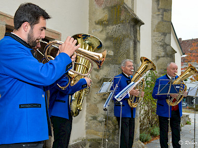 Bei strahlendem Sonnenschein nahmen sie diese Pflicht mit Freude war, um die feiernde Pfarrgemeinde mit Prozessionsmärs ...